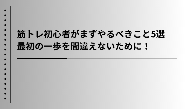 本記事では、筋トレ初心者が「遠回りせず、最短で成果を出すために」まず取り組むべき5つのステップをご紹介します。